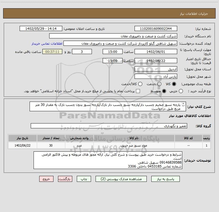 نام دستگاه خریدار:شرکت کشت و صنعت و دامپروری مغان