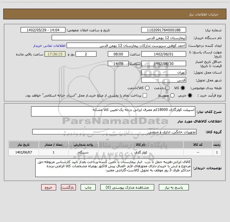 نام دستگاه خریدار:بیمارستان 12 بهمن قدس