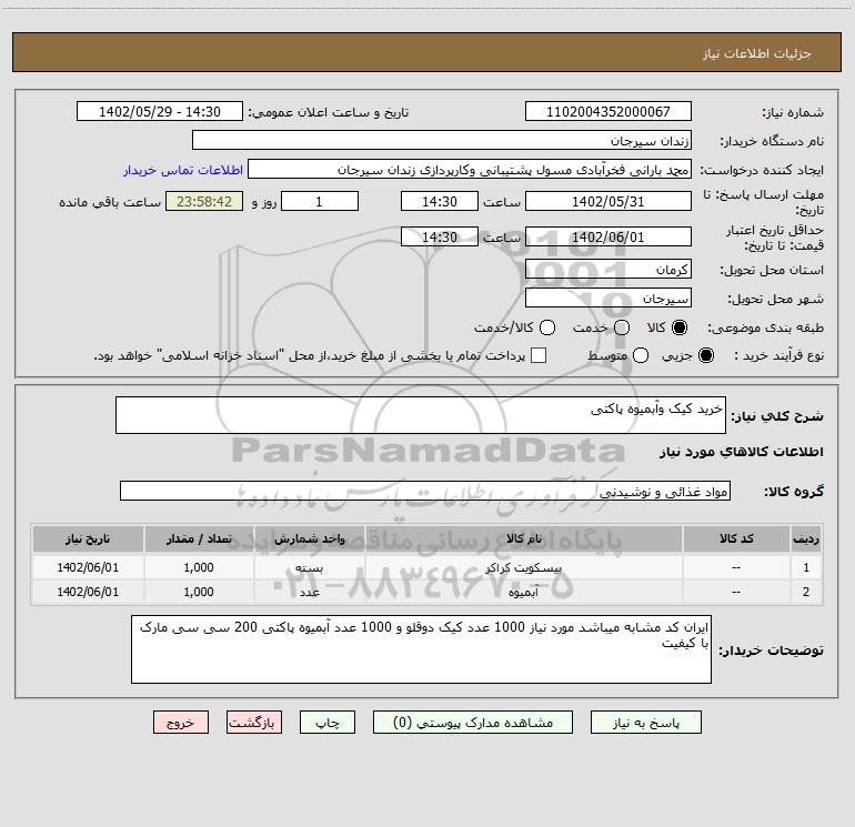 استعلام خرید کیک وآبمیوه پاکتی, استعلام خرید کیک وآبمیوه پاکتی