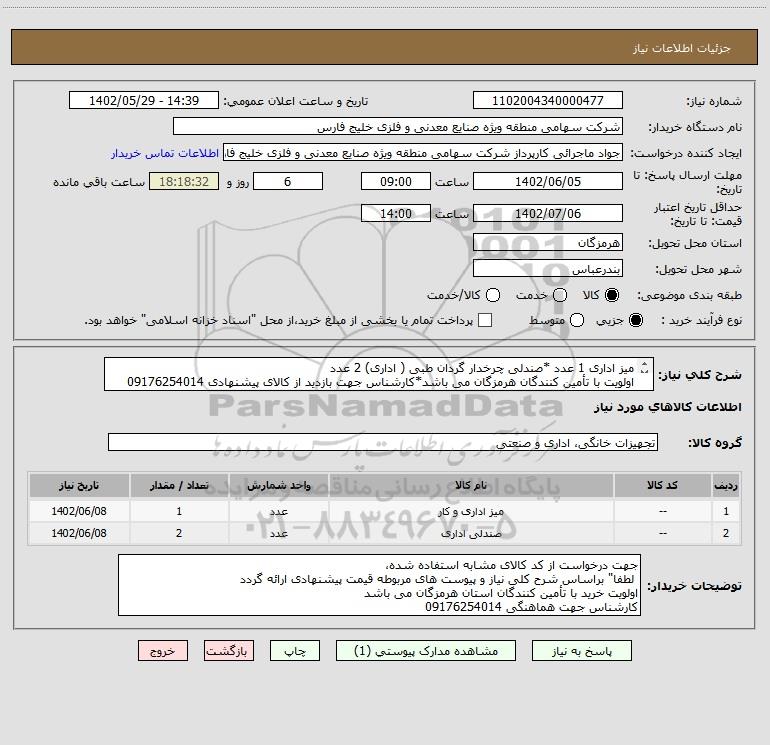 | 2 | -- | صندلی اداری | عدد | 2 | 1402/06/08 |