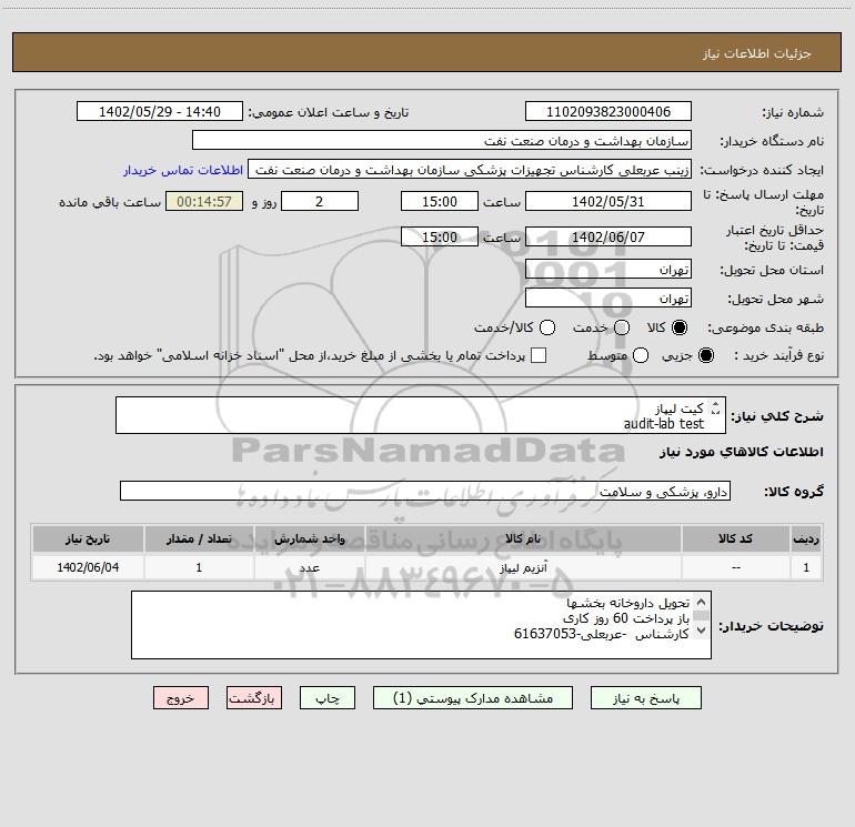 شرح کلی نیاز: کیت لیپاز audit-lab test