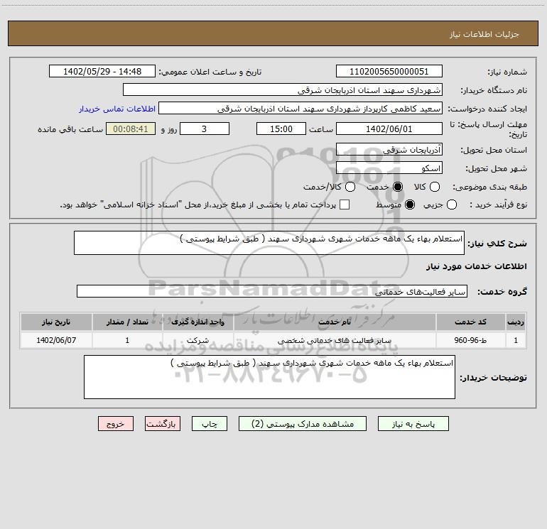 استعلام استعلام بهاء یک ماهه خدمات شهری شهرداری سهند ( طبق شرایط پیوستی ), استعلام استعلام بهاء یک ماهه خدمات شهری شهرداری سهند ( طبق شرایط پیوستی )