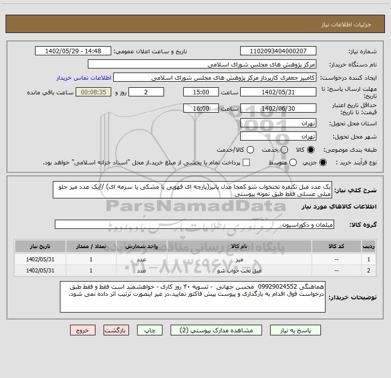 | 2 | -- | مبل تخت خواب شو | عدد | 1 | 1402/05/31 |