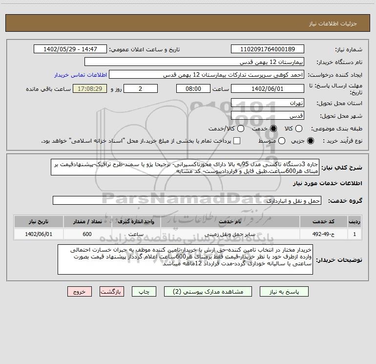 نام دستگاه خریدار:بیمارستان 12 بهمن قدس