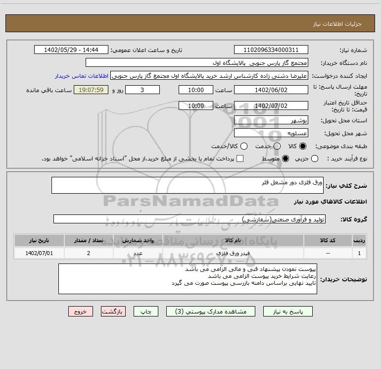 نام دستگاه خریدار:مجتمع گاز پارس جنوبی پالایشگاه اول