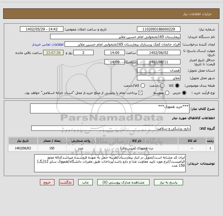نام دستگاه خریدار:بیمارستان 165تختخوابی امام حسین ملایر