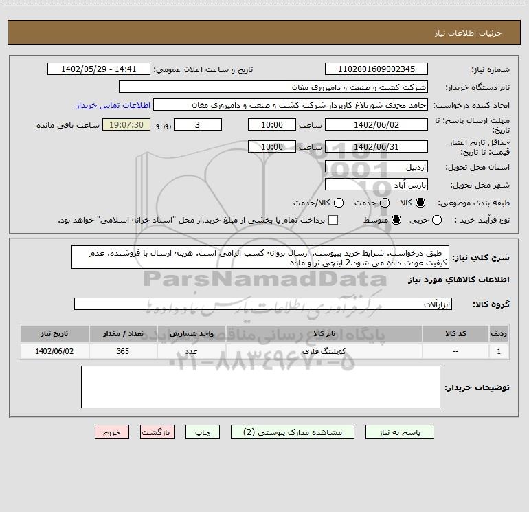 نام دستگاه خریدار:شرکت کشت و صنعت و دامپروری مغان