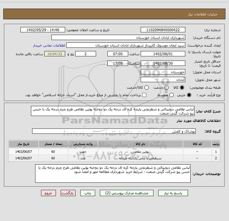 نام دستگاه خریدار:شهرداری ابادان استان خوزستان