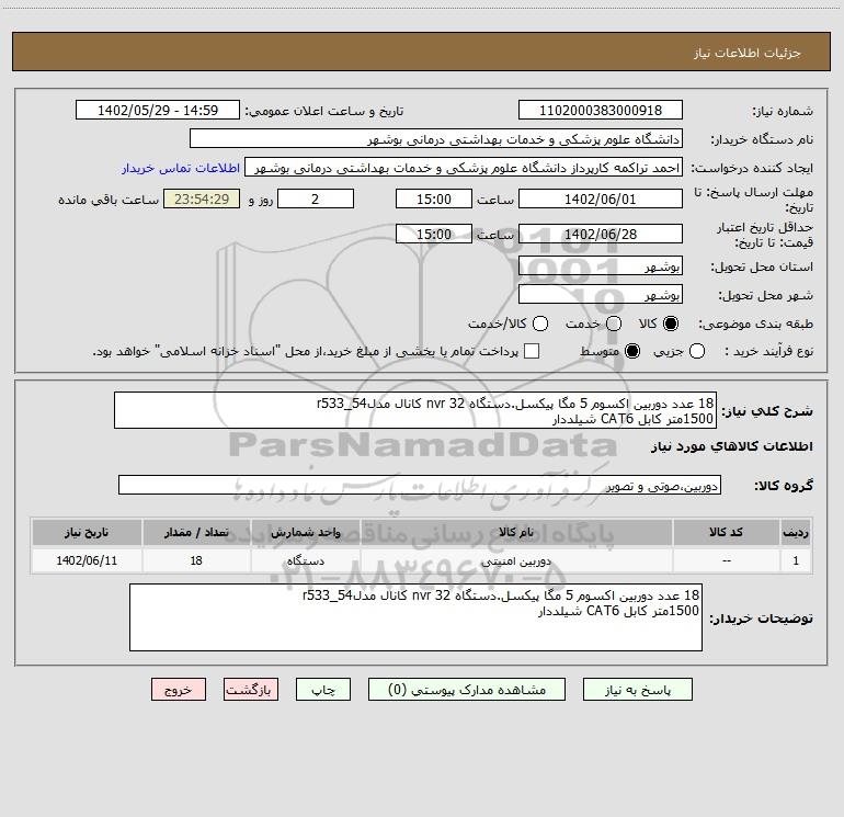 استعلام 18 عدد دوربین اکسوم 5 مگا پیکسل.دستگاه nvr 32 کانال مدلr533_54 1500متر کابل CAT6 شیلددار, استعلام 18 عدد دوربین اکسوم 5 مگا پیکسل.دستگاه nvr 32 کانال مدلr533_54 1500متر کابل CAT6 شیلددار