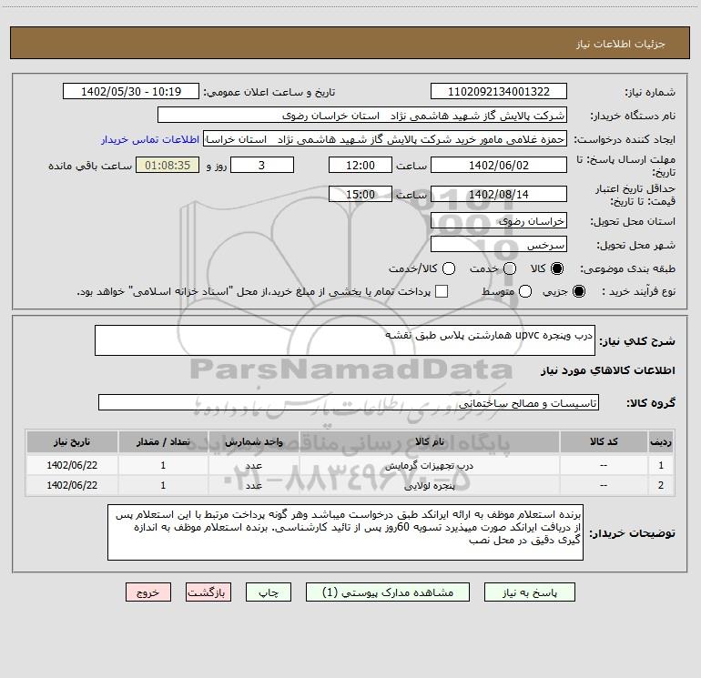 نام دستگاه خریدار:شرکت پالایش گاز شهید هاشمی نژاد استان خراسان رضوی