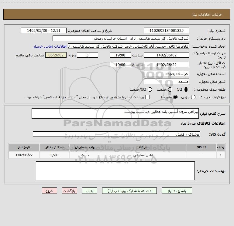 نام دستگاه خریدار:شرکت پالایش گاز شهید هاشمی نژاد استان خراسان رضوی