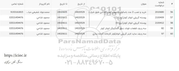 | شماره درخواست | عنوان | از تاریخ | تا تاریخ | نام کارپرداز | شماره تماس |