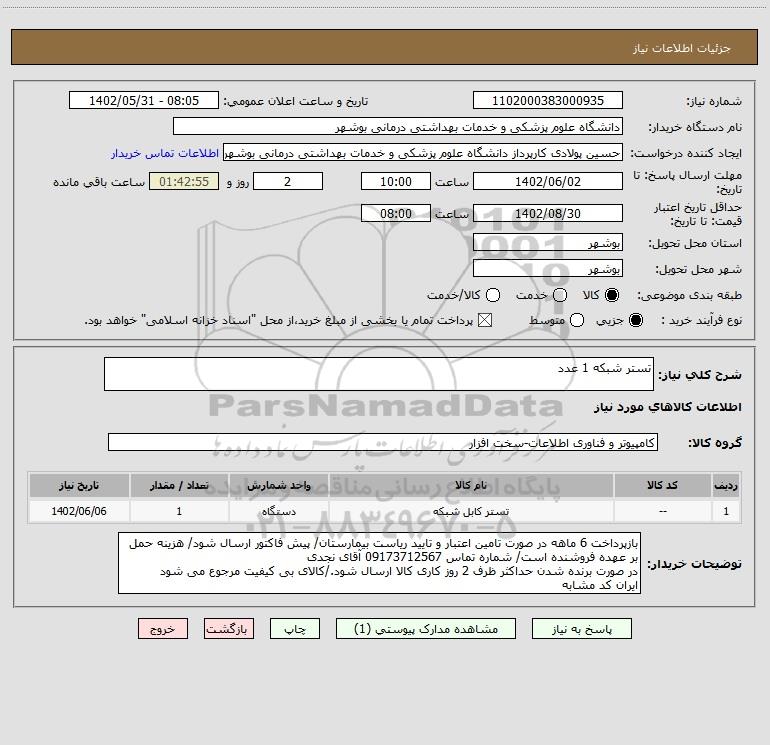 شرح کلی نیاز: تستر شبکه 1 عدد