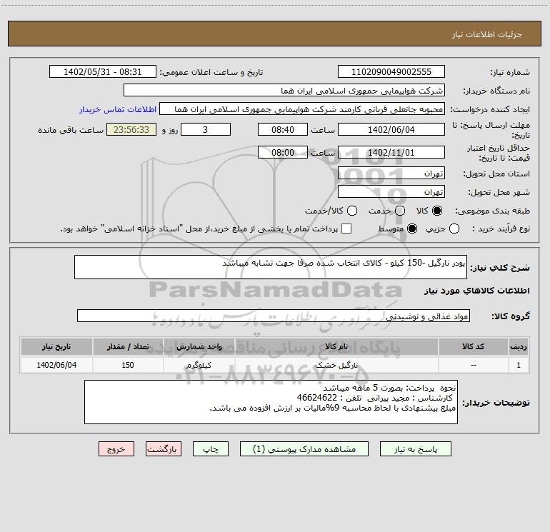 نام دستگاه خریدار:شرکت هواپیمایی جمهوری اسلامی ایران هما
