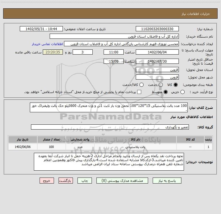 | 1 | -- | پالت پلاستیکی | عدد | 100 | 1402/06/06 |