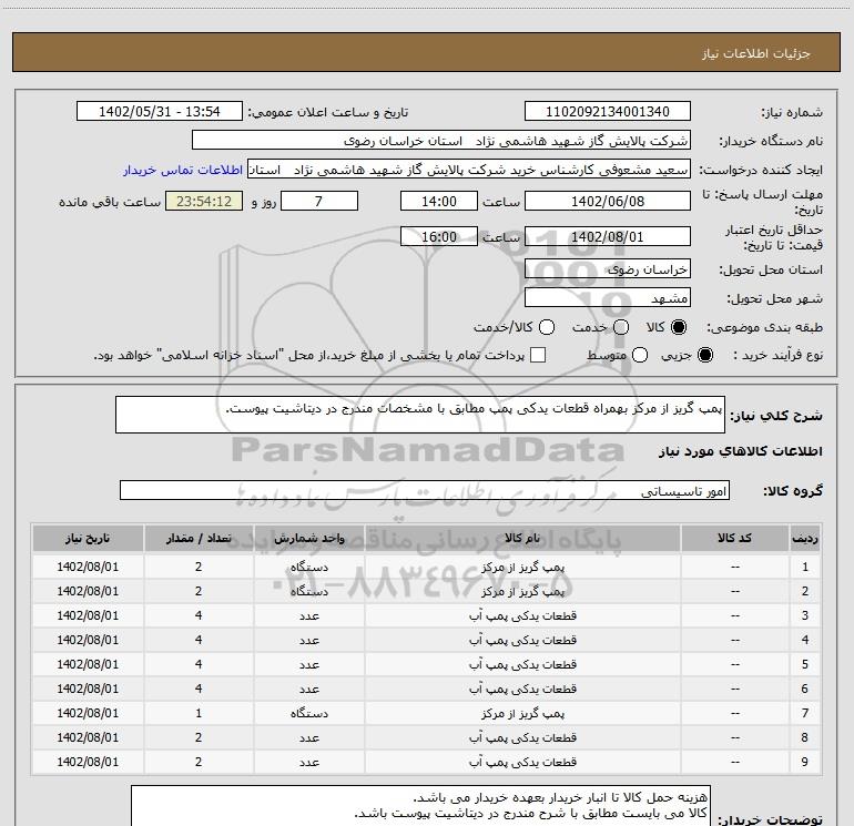 نام دستگاه خریدار:شرکت پالایش گاز شهید هاشمی نژاد استان خراسان رضوی