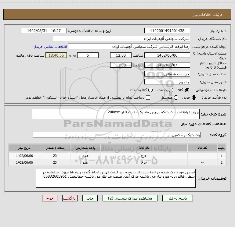نام دستگاه خریدار:شرکت سهامی آلومینای ایران