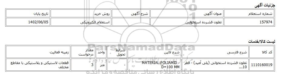 157974تفلون فشرده استخوانیاستعلام الکترونیکی1402/06/05