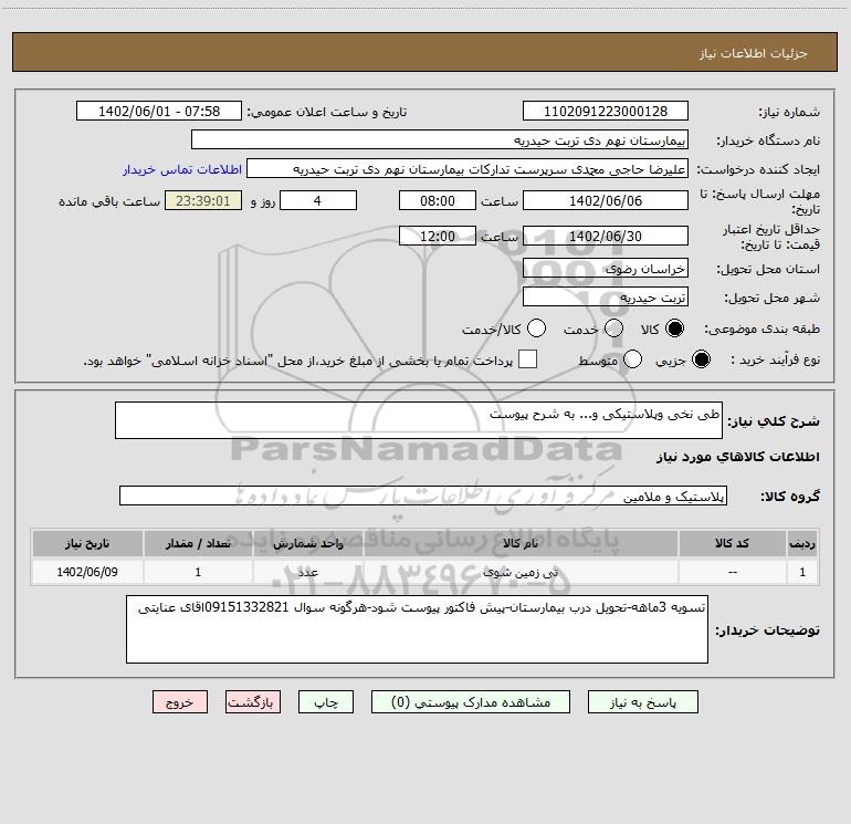 نام دستگاه خریدار:بیمارستان نهم دی تربت حیدریه