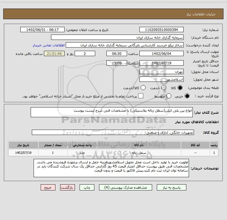 نام دستگاه خریدار:سرمایه گذاری خانه سازی ایران
