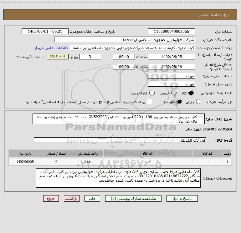 نام دستگاه خریدار:شرکت هواپیمایی جمهوری اسلامی ایران هما