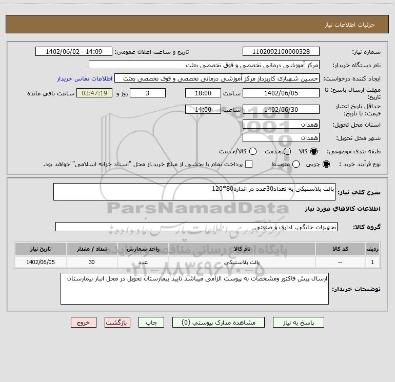 | 1 | -- | پالت پلاستیکی | عدد | 30 | 1402/06/05 |