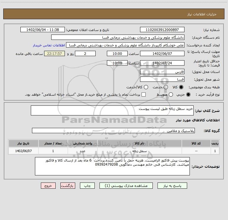 شرح کلی نیاز: خرید سطل زباله طبق لیست پیوست