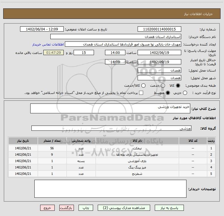 شرح کلی نیاز: خرید تجهیزات ورزشی