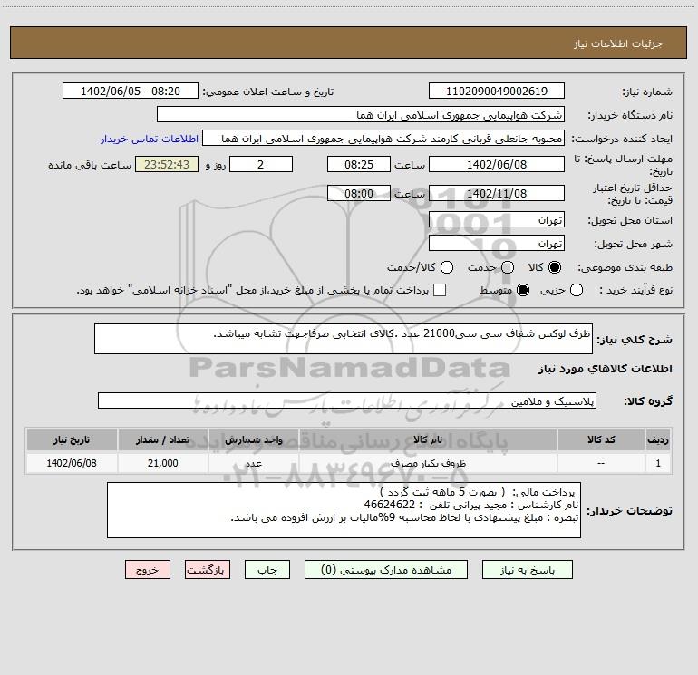 نام دستگاه خریدار:شرکت هواپیمایی جمهوری اسلامی ایران هما