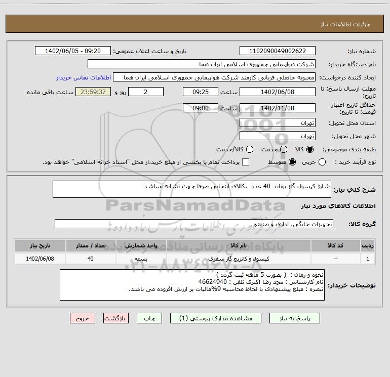 نام دستگاه خریدار:شرکت هواپیمایی جمهوری اسلامی ایران هما