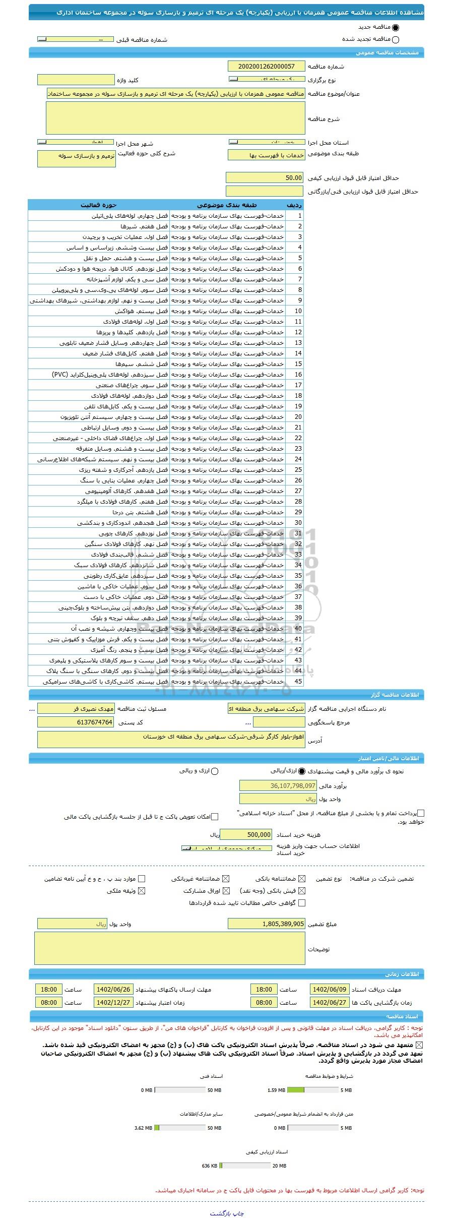 8 مناقصه انجام کلیه کارهای ساختمانی و تأسیساتی 9805586 1404/08/14 new not special not payed خوزستان