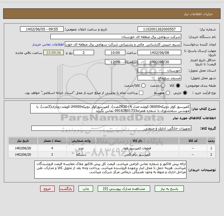 | 1 | -- | قطعات کمپرسور هوا | عدد | 4 | 1402/06/20 |
