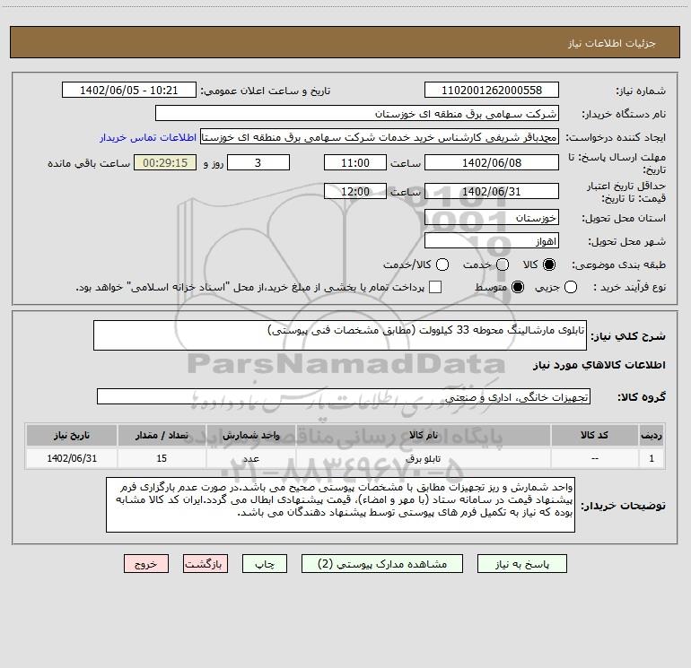 شرح کلی نیاز: تابلوی مارشالینگ محوطه 33 کیلوولت (مطابق مشخصات فنی پیوستی)