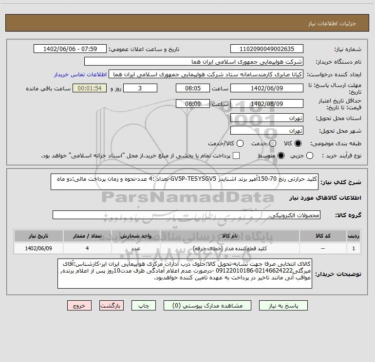 نام دستگاه خریدار:شرکت هواپیمایی جمهوری اسلامی ایران هما