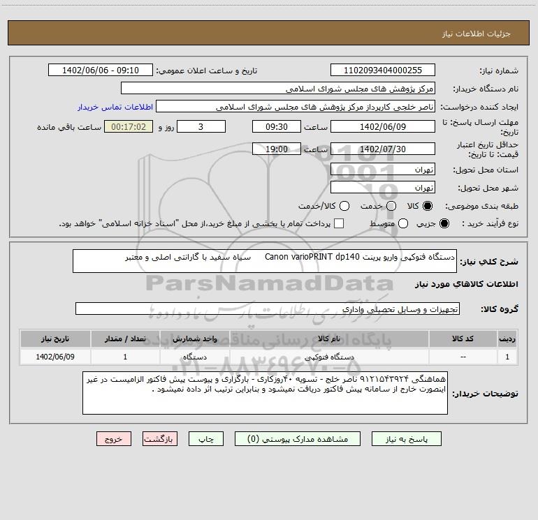 نام دستگاه خریدار:مرکز پژوهش های مجلس شورای اسلامی
