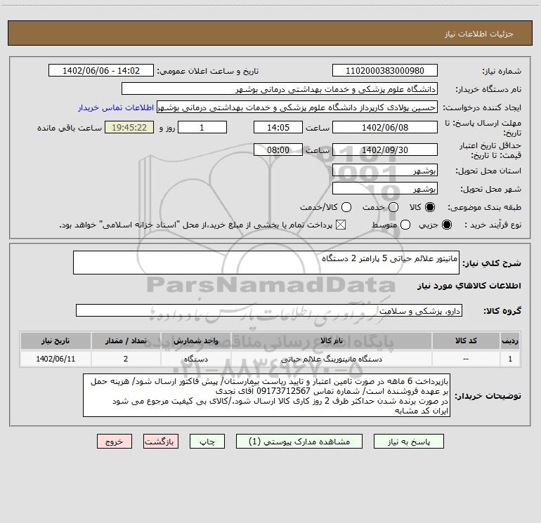 شرح کلی نیاز: مانیتور علائم حیاتی 5 پارامتر 2 دستگاه
