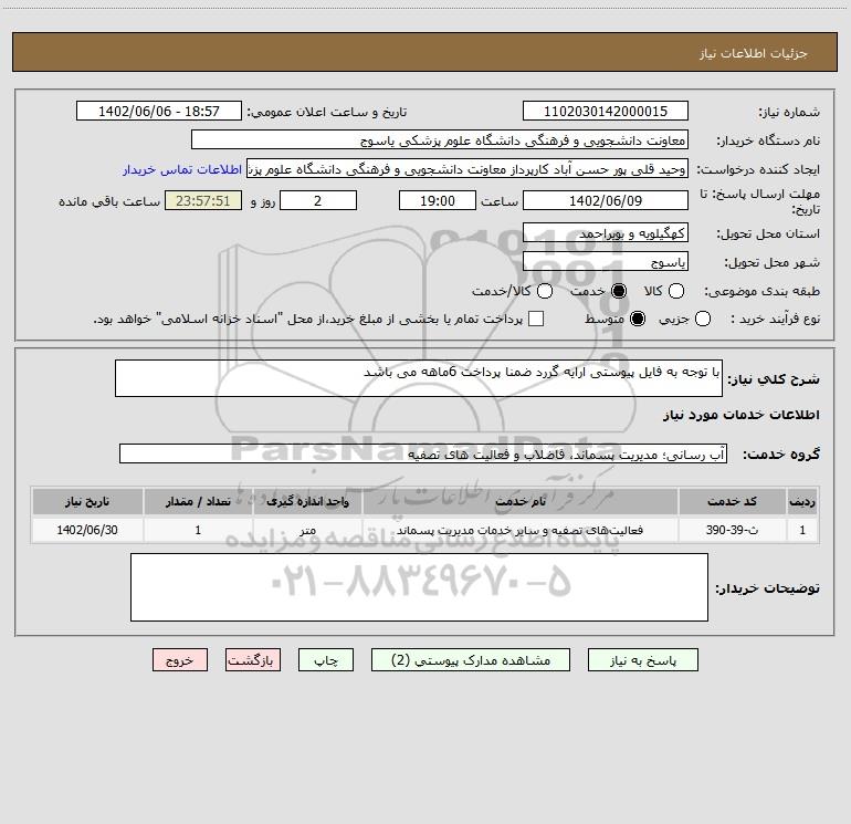 نام دستگاه خریدار:معاونت دانشجویی و فرهنگی دانشگاه علوم پزشکی یاسوج