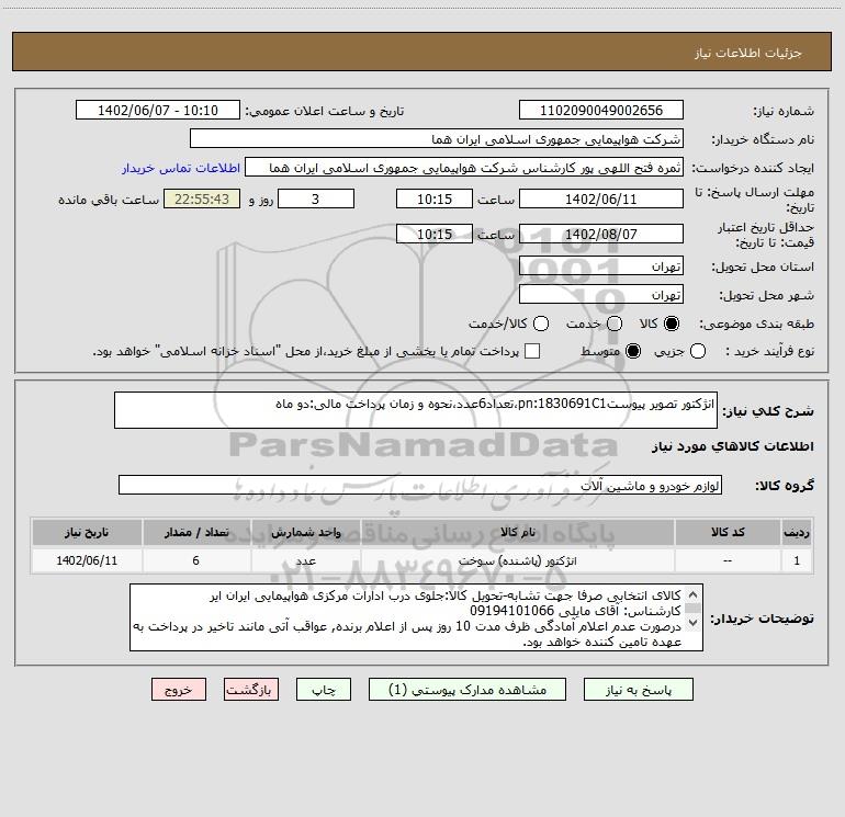 نام دستگاه خریدار:شرکت هواپیمایی جمهوری اسلامی ایران هما