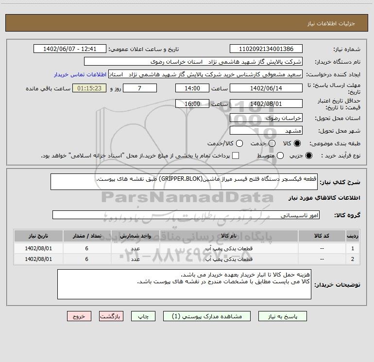 نام دستگاه خریدار:شرکت پالایش گاز شهید هاشمی نژاد استان خراسان رضوی