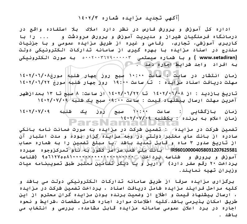 آگهی تجدید مزایده شماره 1402/3 ؟