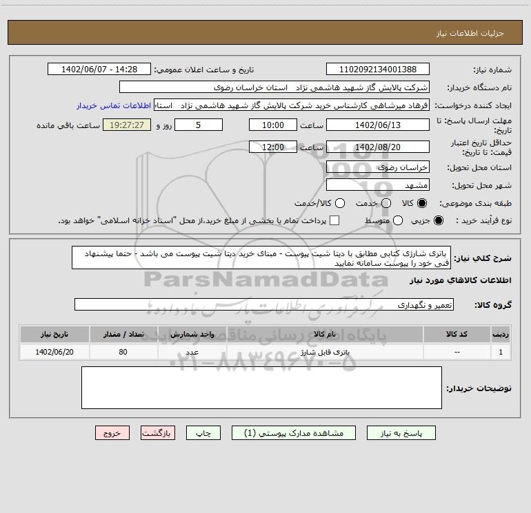 نام دستگاه خریدار:شرکت پالایش گاز شهید هاشمی نژاد استان خراسان رضوی