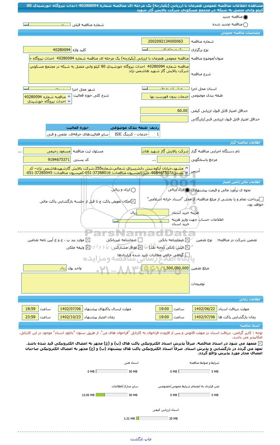 | مبلغ تضمین | 1,500,000,000 | واحد پول | ریال |