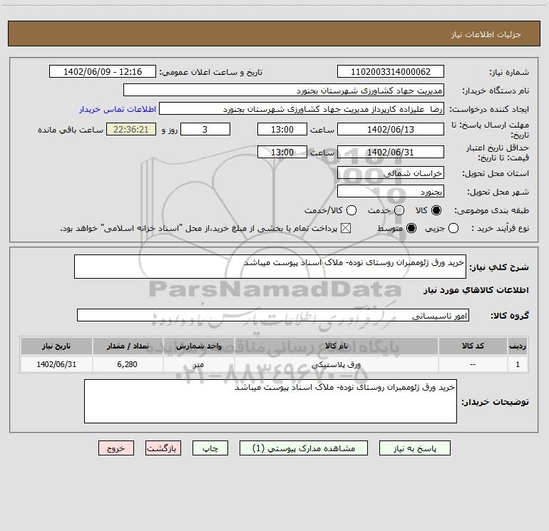 نام دستگاه خریدار:مدیریت جهاد کشاورزی شهرستان بجنورد