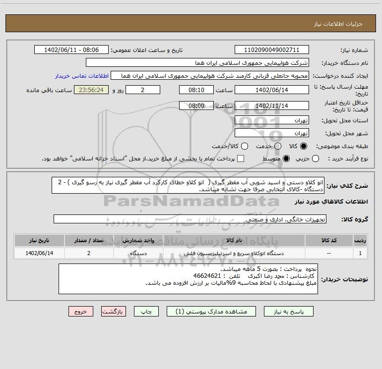 نام دستگاه خریدار:شرکت هواپیمایی جمهوری اسلامی ایران هما