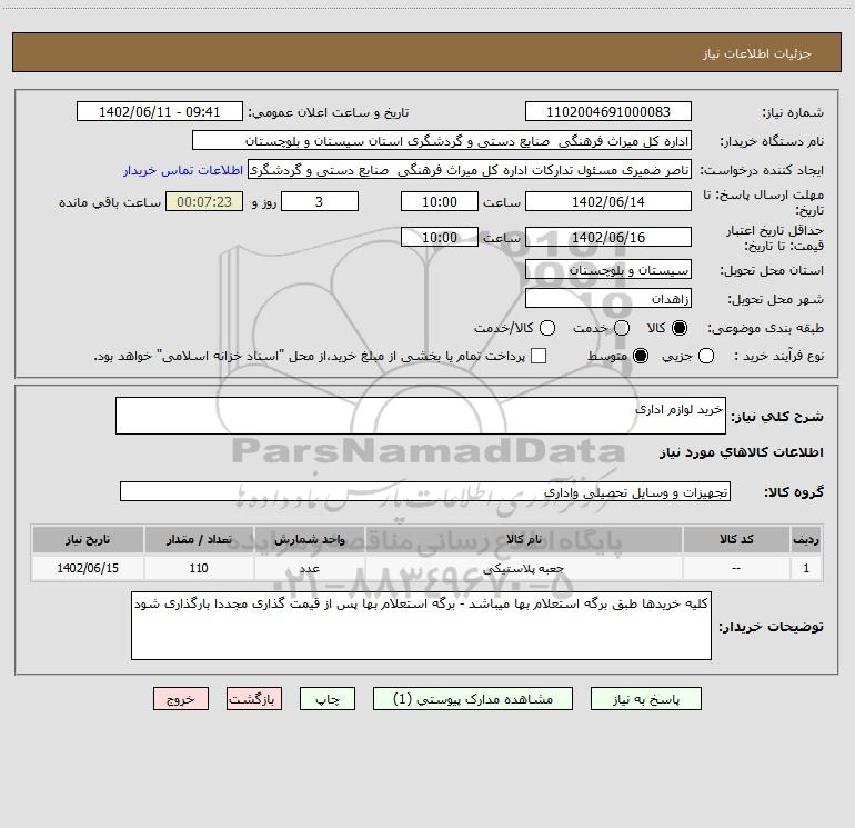 نام دستگاه خریدار:اداره کل میراث فرهنگی صنایع دستی و گردشگری استان سیستان و بلوچستان