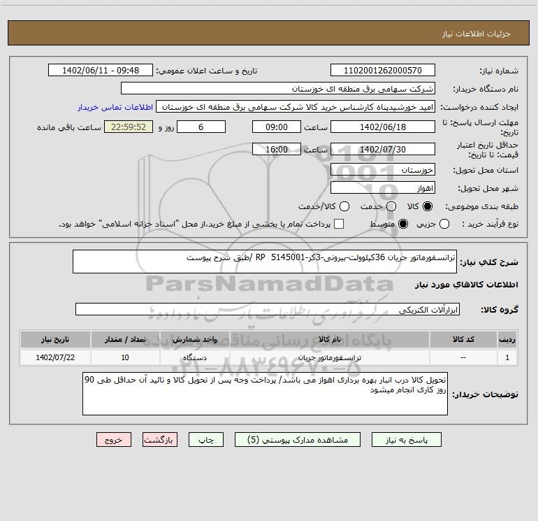 نام دستگاه خریدار:شرکت سهامی برق منطقه ای خوزستان
