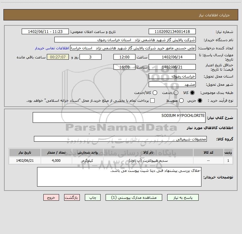 نام دستگاه خریدار:شرکت پالایش گاز شهید هاشمی نژاد استان خراسان رضوی