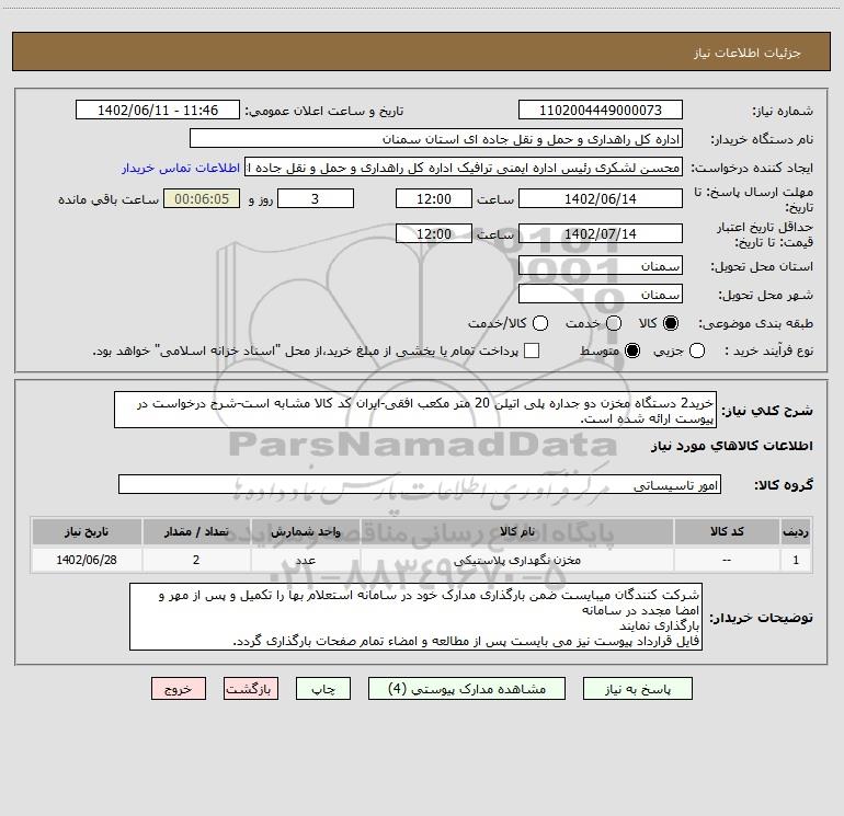 نام دستگاه خریدار:اداره کل راهداری و حمل و نقل جاده ای استان سمنان