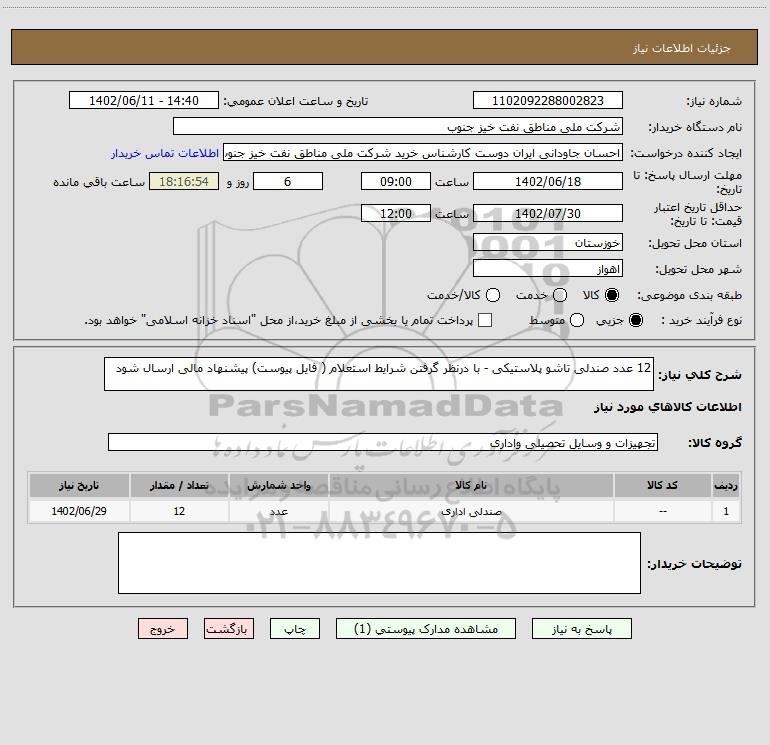 نام دستگاه خریدار:شرکت ملی مناطق نفت خیز جنوب