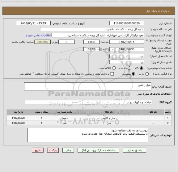 نام دستگاه خریدار:اداره کل بیمه سلامت استان یزد